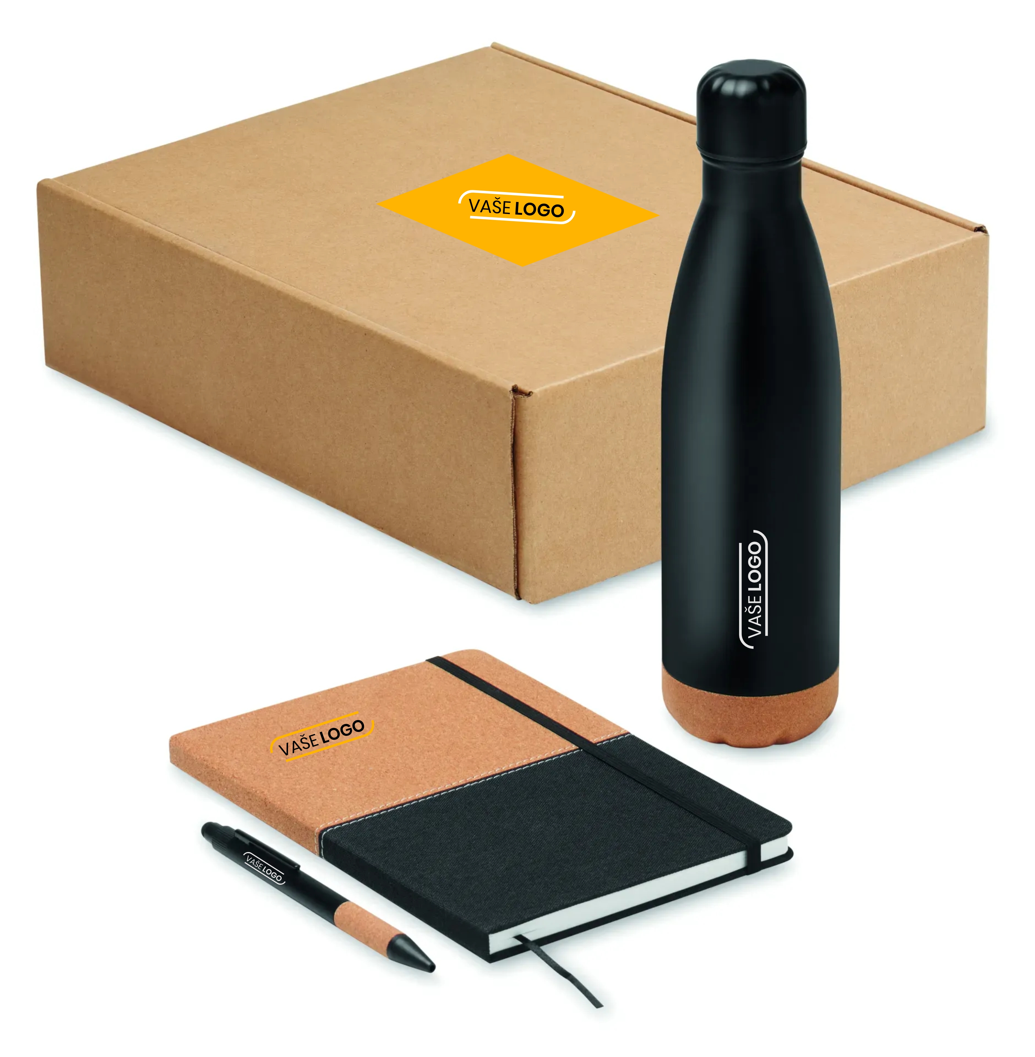 Praktický firemný darček 🎁 v podobe balíka reklamných predmetov v darčekovom boxe s etiketou na box, potlačou na zápisník a s gravírovaním na pero a termosku v cene. Minimálny odber je 5KS s doručením zadarmo. Pre množstevné zľavy nás neváhajte kontaktovať.