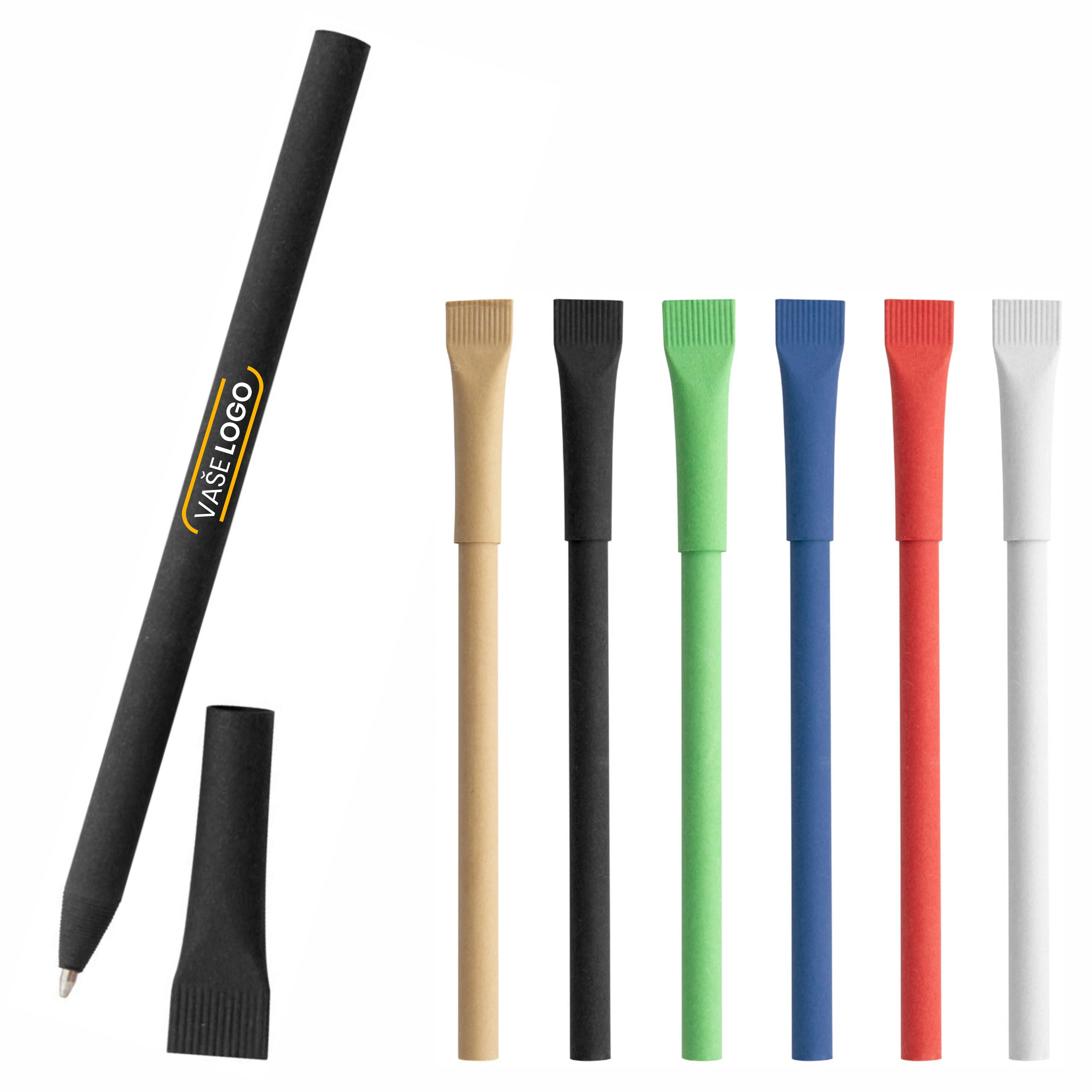 Ekologické papierové reklamné perá s plnofarebnou potlačou loga, textu alebo grafiky v cene. Pero má modrú náplň. Na výber zo 6 farieb s plnofarebnou potlačou v cene.