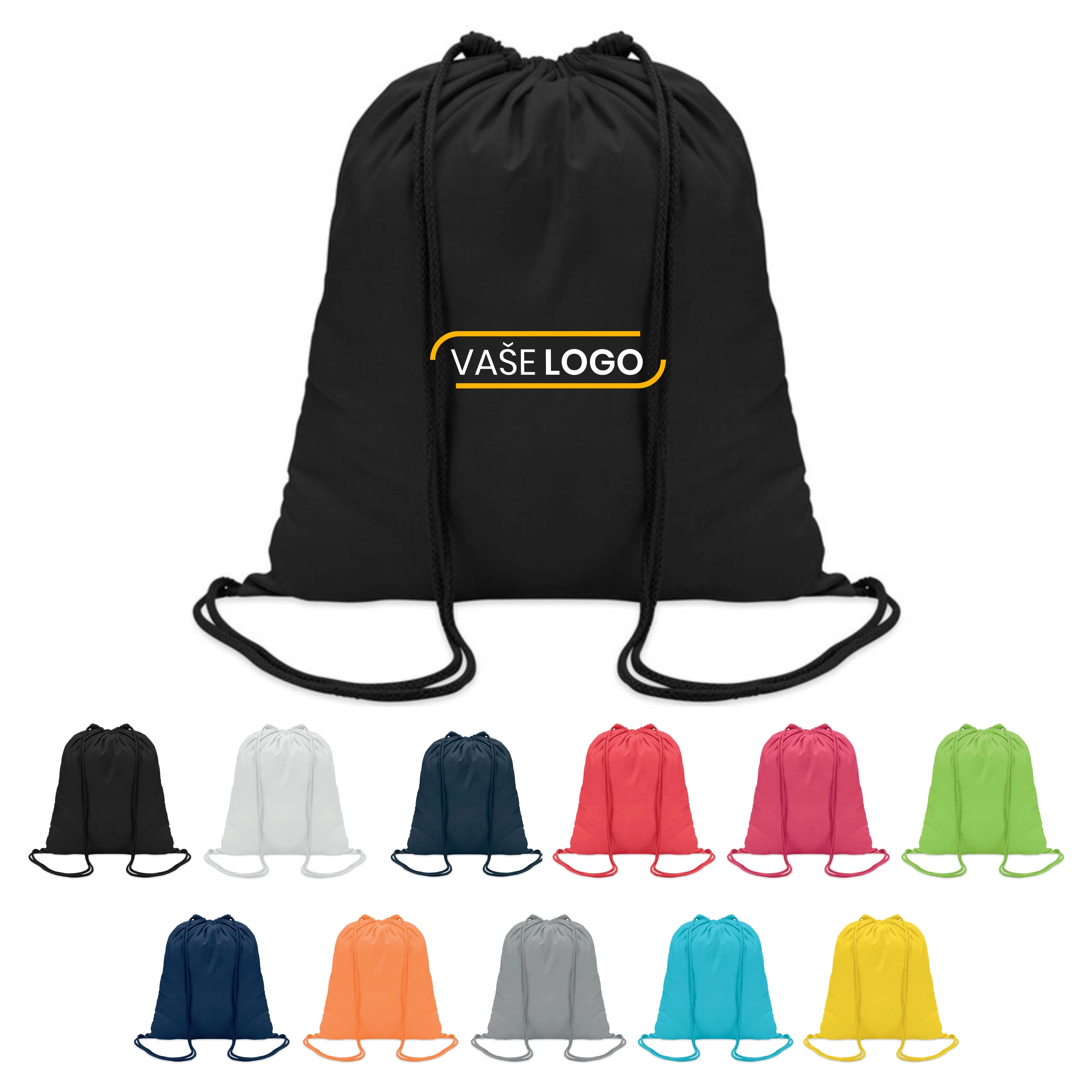 Reklamné bavlnené sťahovacie tašky so šnúrkami - 50KS s potlačou na mieru v cene