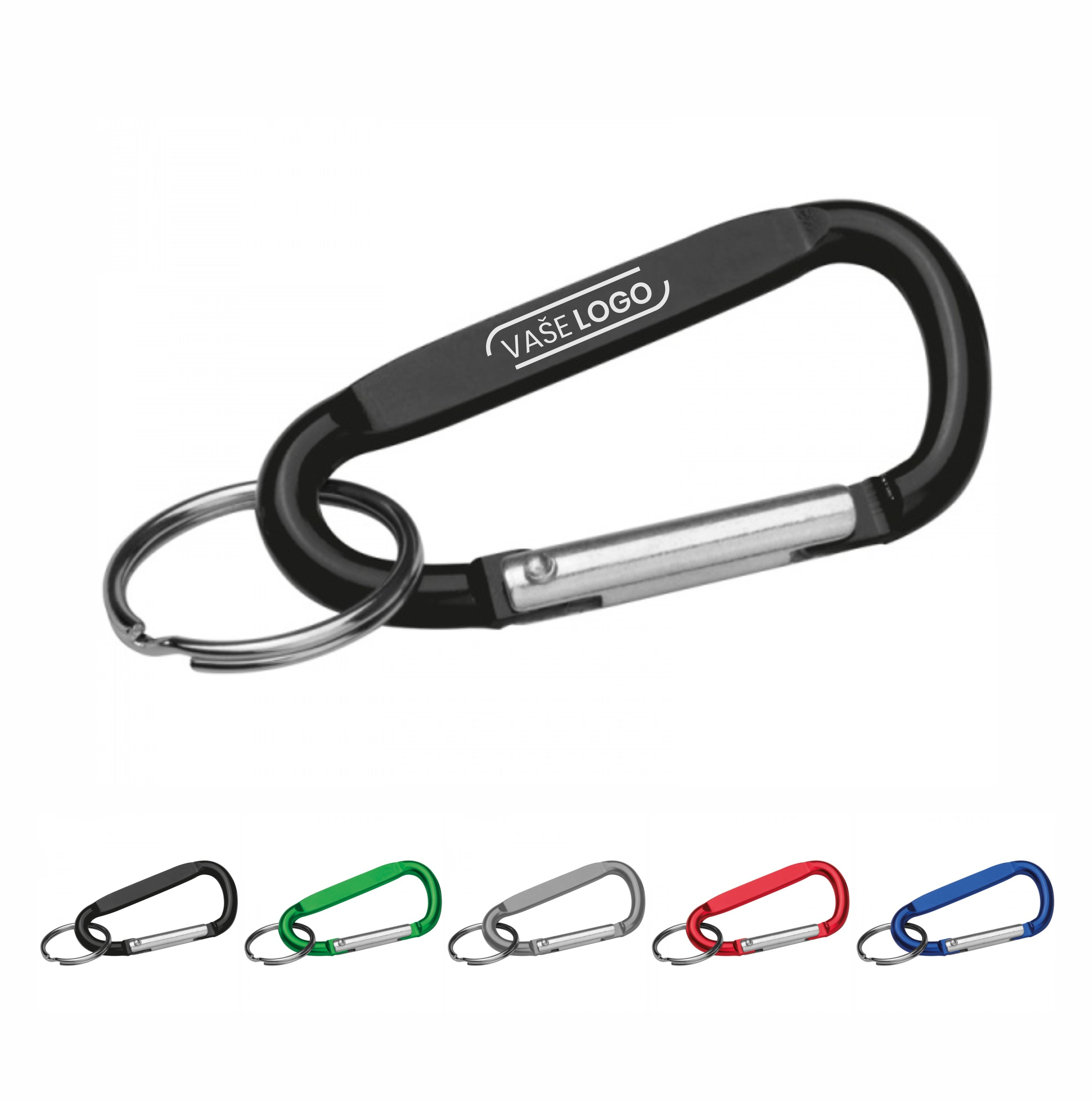 Praktické reklamné kovové kľúčenky s karabínou - 100KS s gravírovaním loga alebo textu. Na výber z 5 farieb s gravírovaním v cene.