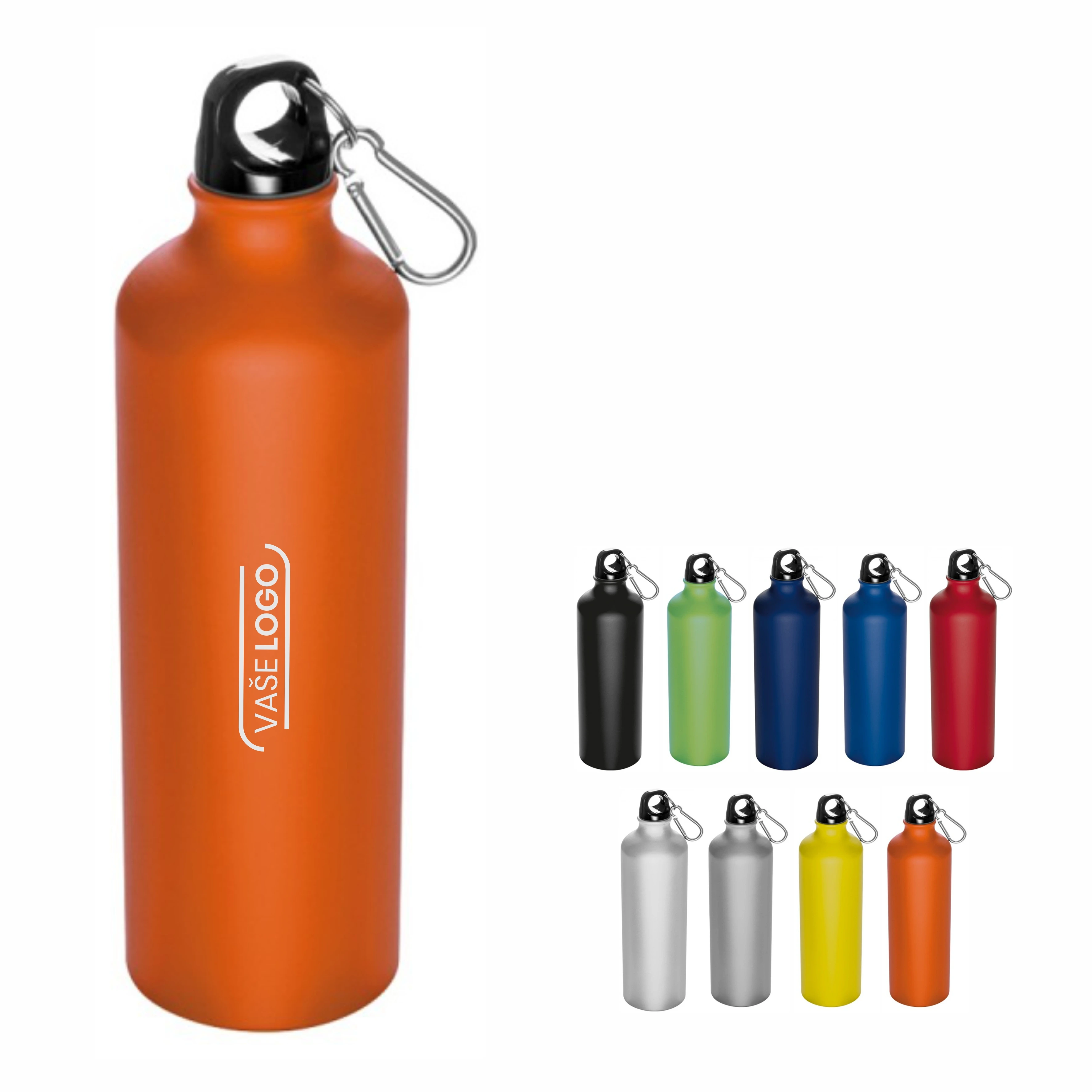 Reklamné hliníkové fľaše 800ml s karabínou - 20KS s gravírovaním v cene