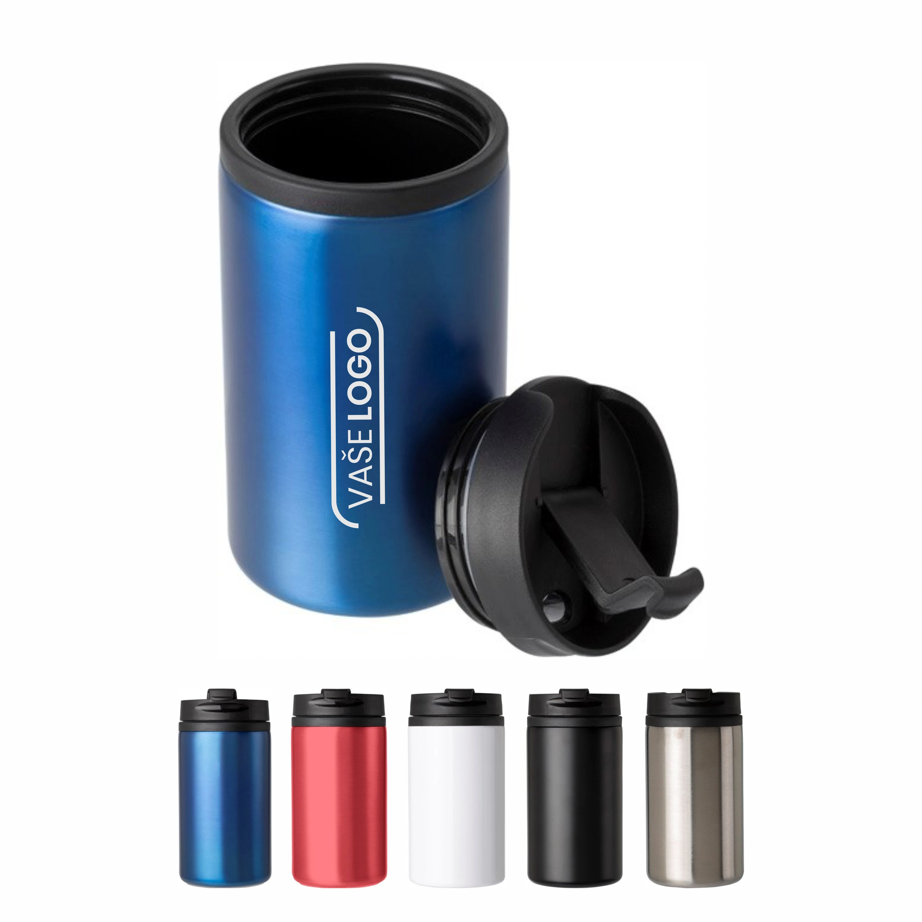 Reklamné cestovné termohrnčeky je možné farebne kombinovať po 10KS. Minimálny odber je 10KS.